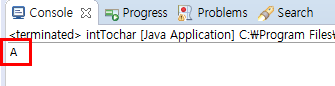타입캐스팅을 처리하여 65의 정수 데이터를 처리하니 A가 나왔다.