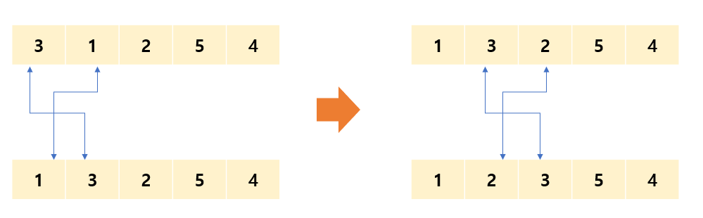 n, n+1을 비교하고 만족하면 서로의 위치를 교체해주는 방식입니다.