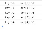 console.log("key >"+i+" arr["+i+"] >"+arr[i]);