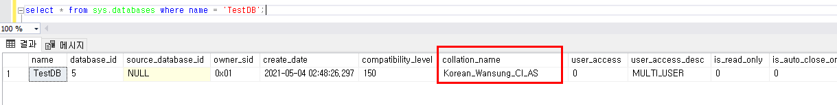 | Mssql - 한글 깨짐(데이터베이스 인코딩 확인,변경하기) (2) | 2021.05.06 |