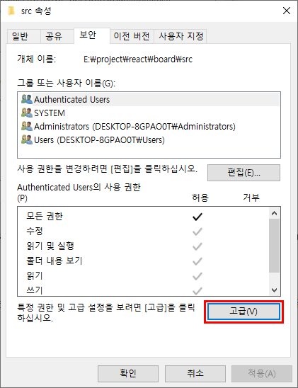 관리자 권한이 아닌 경우 권한 설정에 따라 액세스 거부가 된다.
