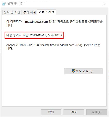 4. 시간이 동기화된걸 확인 할 수 있고 다음 동기화 되는 시간을 확인할 수 있다.