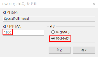 3. 단위를 10진수로 변경하고 원하는 시간을 입력한다. 단위는 초이므로 초로 입력해주면된다.