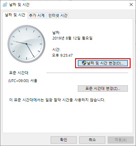 3. 날짜 및 시간 변경을 클릭한다.