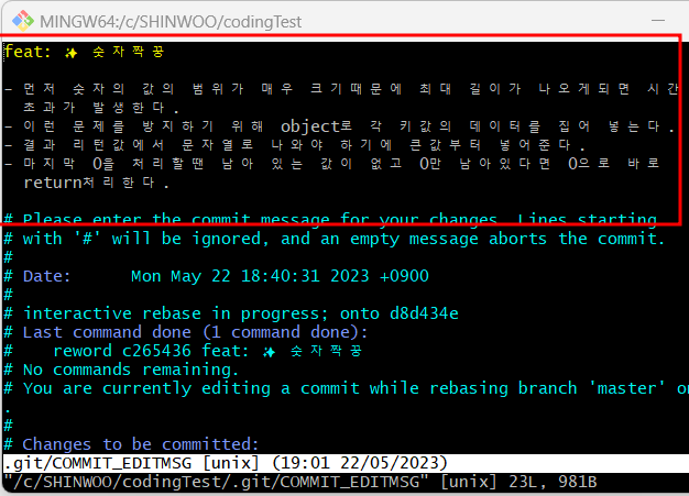 여기서 소스를 약간 수정하고 add 후 commit을 해서 push까지 진행해보겠습니다.
