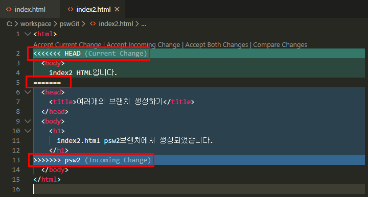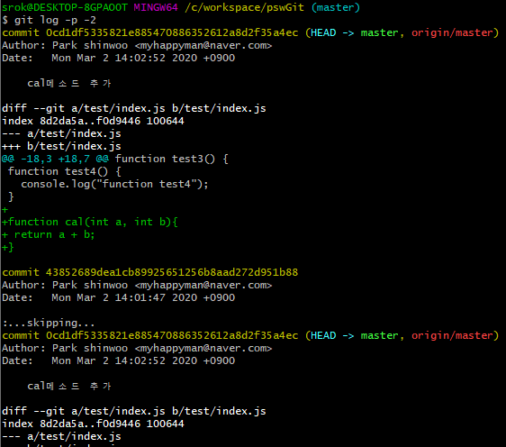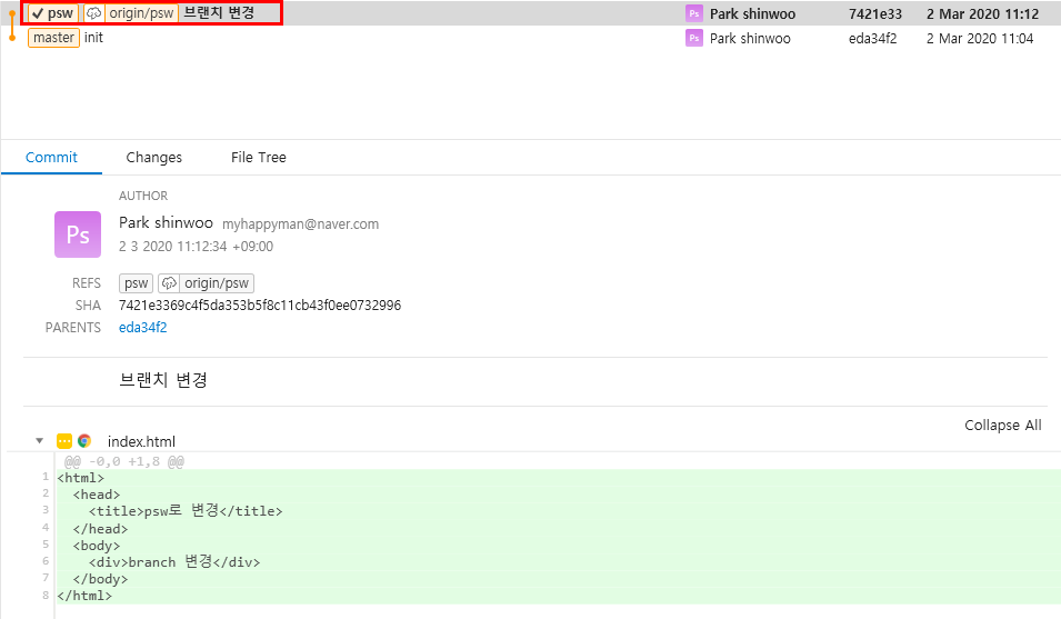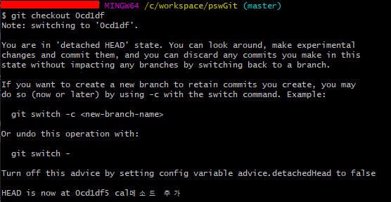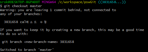 지금까지 따라오셨다면 commit의 헤드는 psw에 처리되어 있을텐데, 다시 master로 변경해보겠습니다.