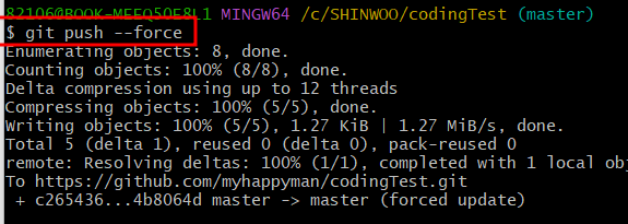 정상적으로 변경된 branch로 올라간 모습을 확인 할 수 있습니다.