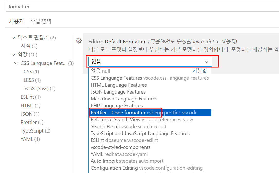 Prettier도 마찬가지로 검색하면 바로 나오므로 설치해서 사용하면 된다.