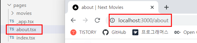 위의 예제의 경우 /about?name=test 의 형태로 화면 전환이 이루어집니다.