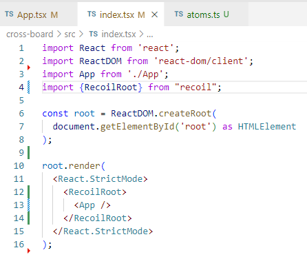 그 전에 전체를 RecoilRoot로 App을 감싸주는걸 잊지 말자!