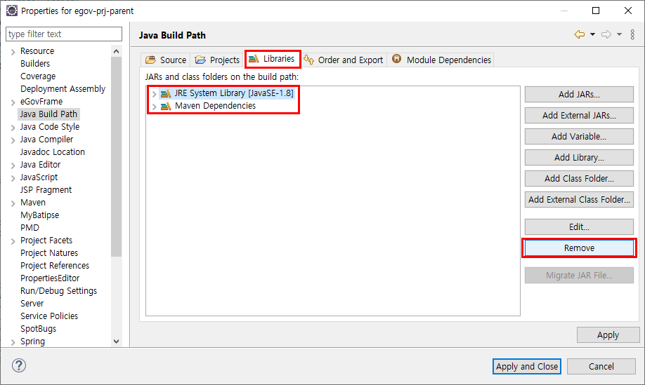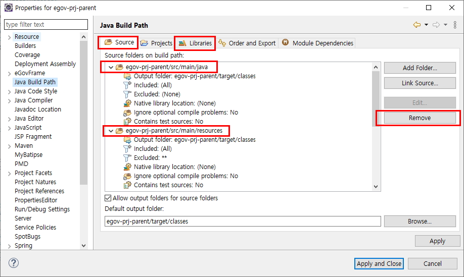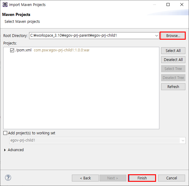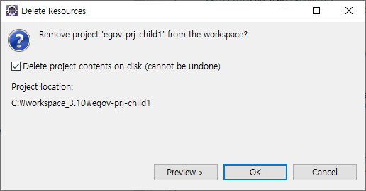5. 필요없어진 egov-prj-child1은 지웁니다.