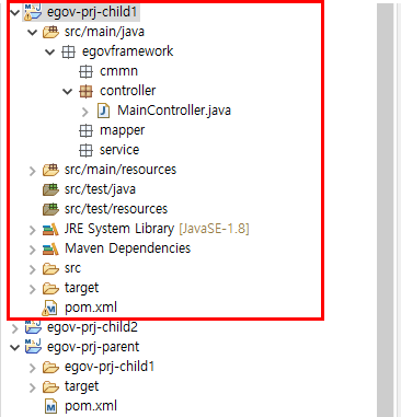 먼저 조상(부모)가 될 프로젝트를 구성한다. (egov기준으로 예시를 작성하겠습니다.)