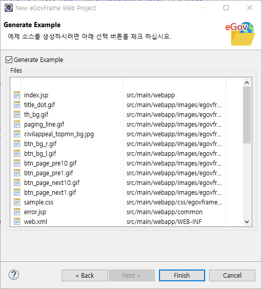 3. egov구조 sample데이터도 전부 체크해준다.